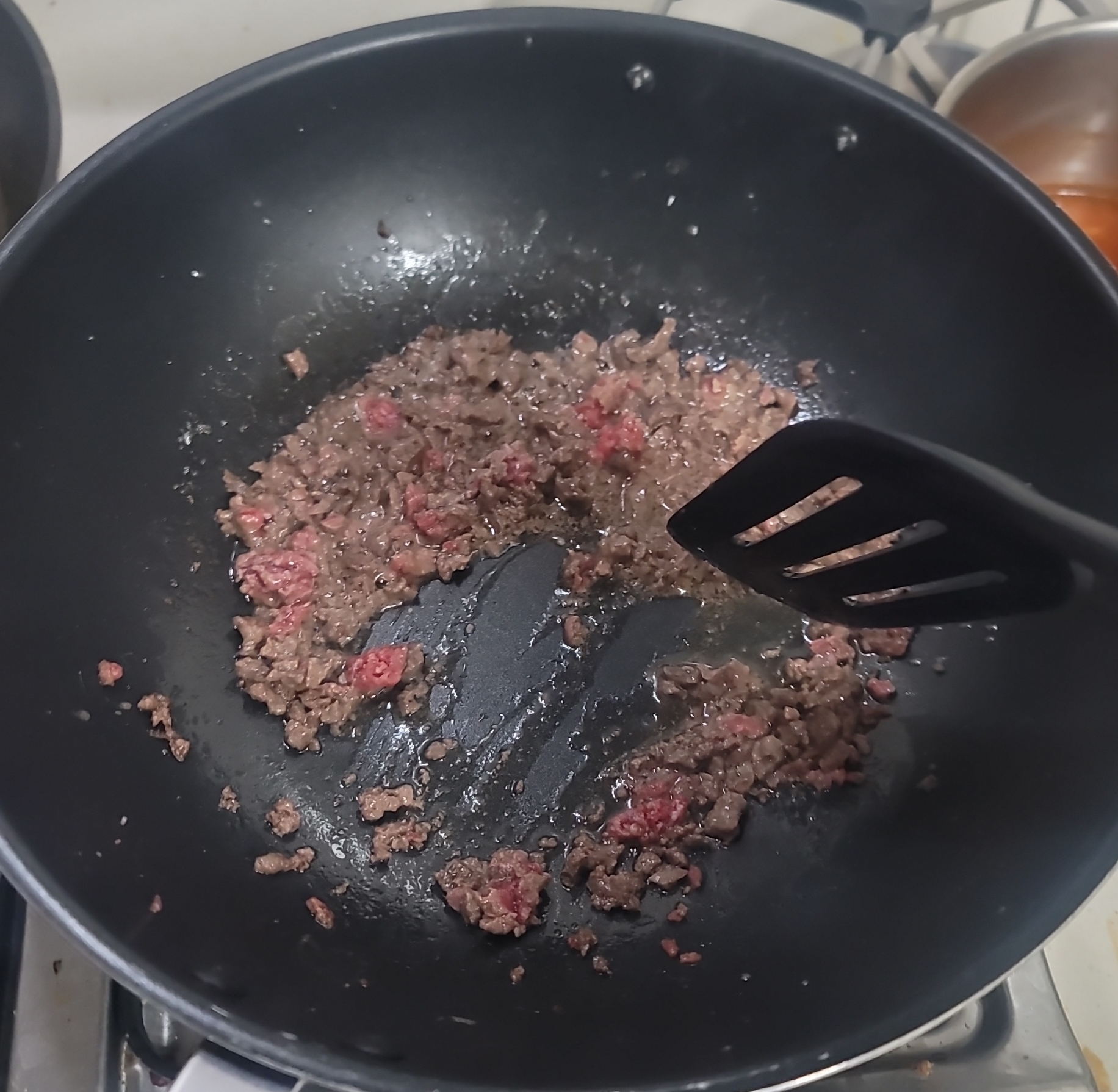 팬에 남은 기름과 고기 맛도